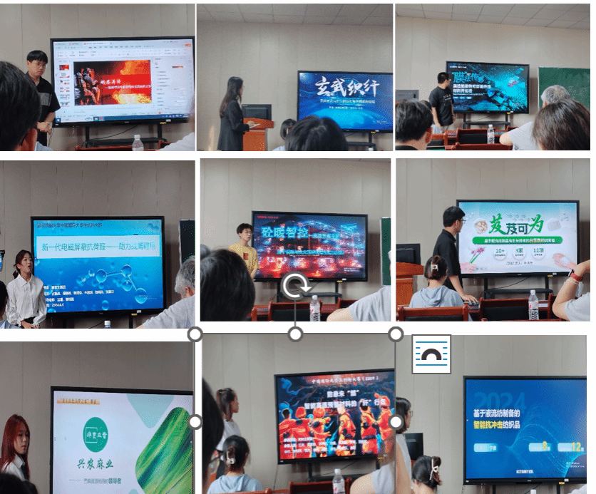 中国国际大学创新大赛纺织学院院赛自2023年12月份启动以来,经过广泛宣传和动员,共有125项作品报名。学院优选了14项优秀作品参加院赛答辩。参加本次大赛的各项目汇报人依次介绍了自己项目。向绍琼介绍了“新一代电磁屏蔽抗荷服”,周洋东介绍了"膜"法传感-高性能柔性可穿戴传感设备,顾佳音介绍了“兴农麻业”项目,郑丽萍介绍了“海维盾——航海新纪元的波涛守护者”项目,金正浩介绍了“砼暖智控-安居智能守护”项目,陈定伟介绍了“刚柔并济-玄武岩基消防装备的研发及应用”项目,徐佳琳介绍了“绿净环保科技-水葫芦资源利用的领导者”项目,李杨介绍了“弹无可惧—新型针织防弹伞布开拓者”项目,徐执钦介绍了“芨芨可为——基于靶向控制晶体生长技术的白芨敷料领军者”项目,韩秀介绍了“玄武织纤-玄武岩纤维及其衍生制品在特种领域的应用”项目,屈雪茹介绍了项目“防患未“燃”---智能高温预警材料的“纤”行者”,宁惠介绍了“液流体纺纱技术及其智能应急防护纺织品开发”项目,黄丽娜介绍了水相提取咖啡渣色素及锦纶抗UV染色。