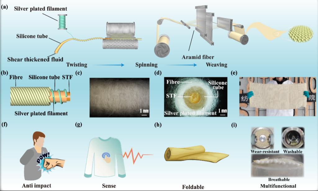 近年来,具有抗冲击和智能监测功能的智能可穿戴设备越来越受到人们的关注。剪切增稠材料因其吸能防护的优势,非常适用于抗冲击材料的制备。但是,目前通过浸渍、涂覆等方式制备的剪切增稠流体(STF)基复合防护纺织品,存在穿戴舒适性差、液体易泄漏、耐磨耐用性差等问题,因此将STF加工成兼备透气、亲肤、耐用的智能型抗冲击防护功能纺织品,难度大、挑战度高。为解决该加工技术难题,肉视频