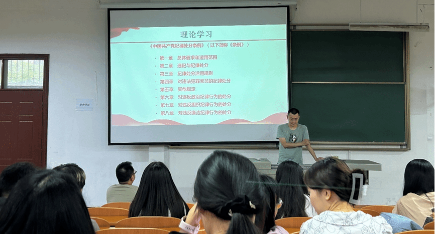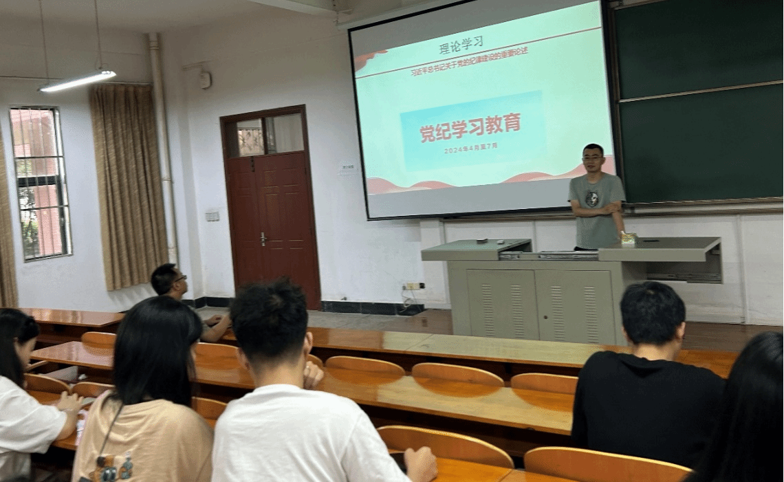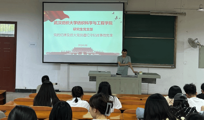 纺织学院研究生第一党支部于2024年6月20日晚七点在8H-502开展了党纪学习教育以及微党课活动。支部书记唐晓宁及全体党员参会,会议由支部副书记潘钰主持。