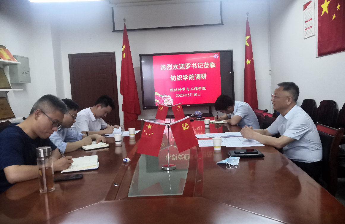 为扎实推动主题教育见行见效,5月16日下午,校党委副书记、副校长罗锦银先后到纺织学院和材料学院,对两个学院学习贯彻习近平新时代中国特色社会主义思想主题教育工作开展情况进行调研、指导。纺织学院和材料学院领导班子成员参加调研活动。