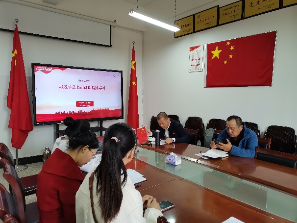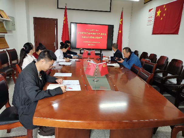 四月份主题党日活动中,支部胡红辉同志以PPT形式,向支部同志们传达2023年4月3日学习贯彻习近平新时代中国特色社会主义思想主题教育工作会议精神,并领学习近平总书记重要讲话。郭徐易同志分享了学校学习贯彻习近平新时代中国特色社会主义思想主题教育动员会的会议精神,支部书记陈志军同志结合党的十八大以来,党先后组织开展六次集中性学习教育,分享自己多年学习体会,陈志军谈到,我们生活、工作在伟大的新时代,自豪感满满,我们在学习中增强党性,寻找生活的智慧和工作中前进的动力。