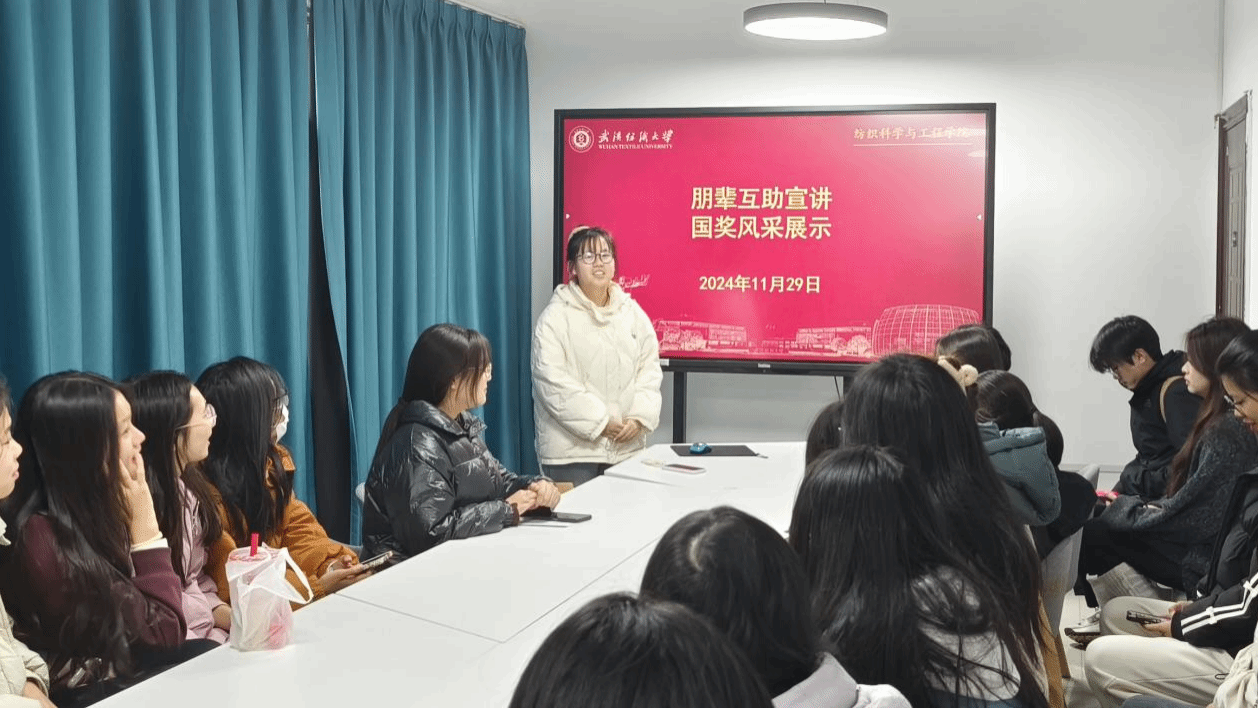 为弘扬优秀学风,激励学生积极进取,促进学生之间的交流与互助。纺织学院于2024年11月29日在“织争朝夕”一站式学生社区成功举办了“朋辈互助宣讲与国奖风采展示”活动。本次活动由23级辅导员余国铖老师主持,国家奖学金获得者和部分学生代表共同参与。