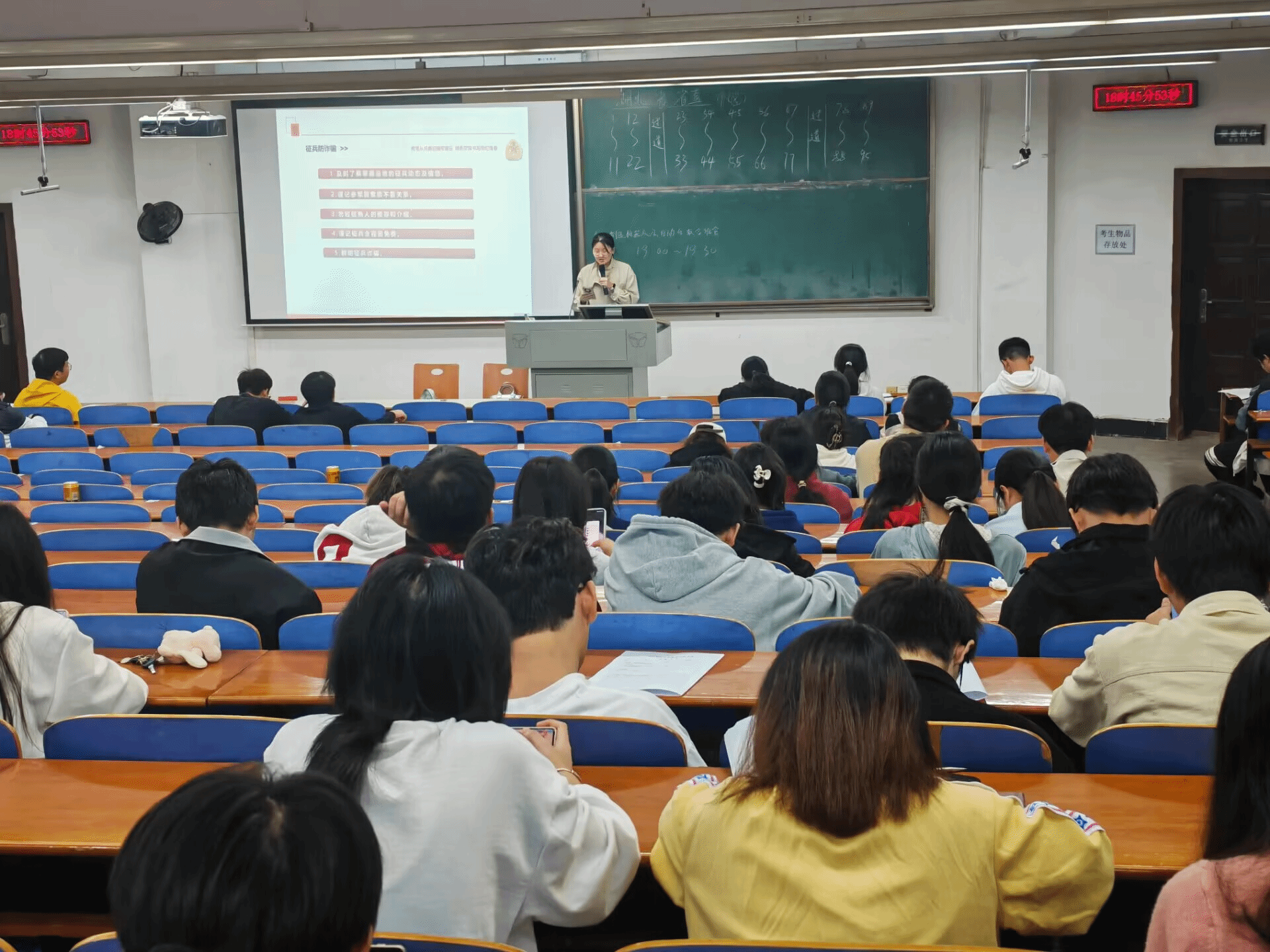 首先,由退役大学生士兵郭子扬开展2024年秋学期征兵政策宣讲会。郭子扬结合国防建设的新形势、新特点,就大学生入伍的基本条件、报名流程、政审体检、军种选择、参军入伍的优势、优抚待遇等相关问题进行了详细解读。他鼓励广大学子积极参与国防事业,将青春奉献给国家的建设和发展,为国防事业贡献力量。