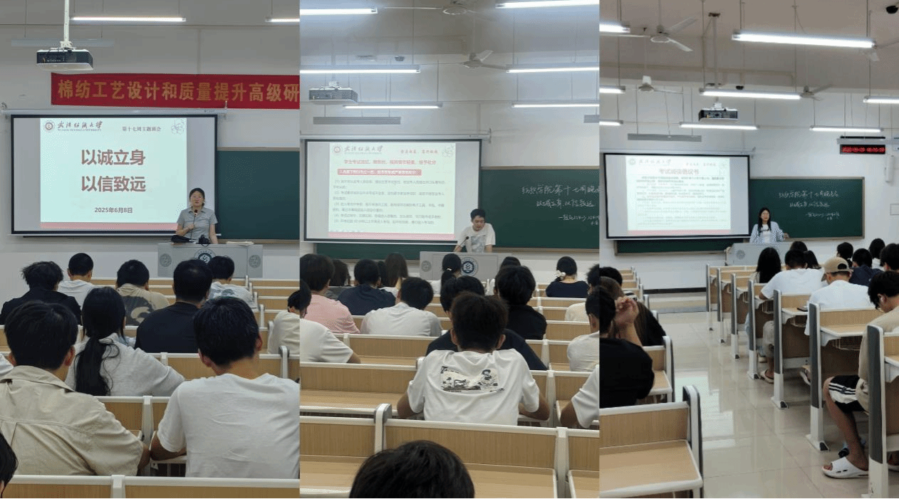 为进一步弘扬诚信美德,筑牢学风考风建设根基,切实提升学生诚信应考意识与自律能力,6月8日,纺织学院于开展了“以诚立身,以信致远”主题班会。本次班会由各年级辅导员、班主任主持,全体学生共同参与。