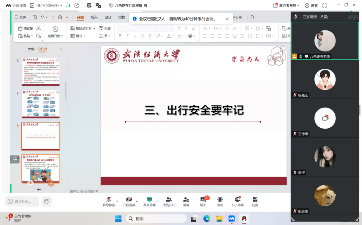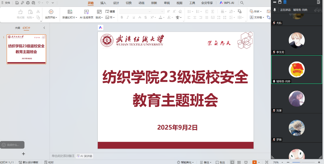 纺织学院开展2025年秋季“平安假期,安全返校”线上主题班会