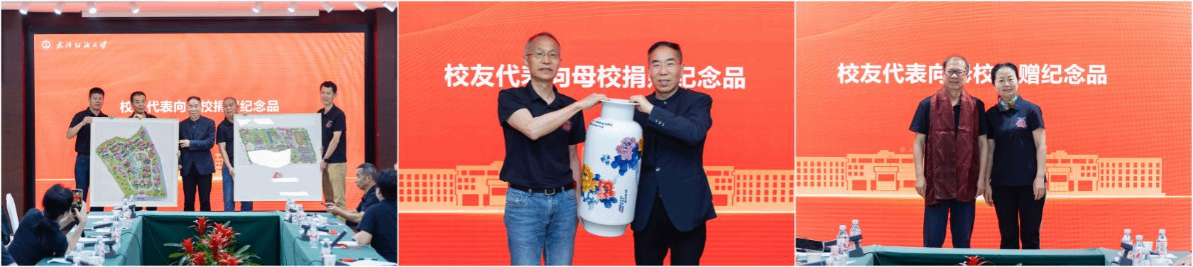 座谈会上,校友们回顾了在母校的求学经历,重温了昔日与老师同学的美好时光,表达了对母校和老师们教育培养的感恩之情和重返母校的激动心情。殷殷母校情,依依校友心。校友们不远万里、精心准备,为学校捐赠景德镇陶瓷花瓶、校园布局绸缎画等纪念品,为母校和老师送上衷心祝愿,象征校友永远与母校共奋斗、同进步。
