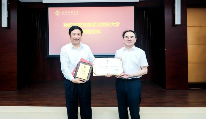2023年5月,时任学校党委书记田辉玉代表学校接受校友孙应安捐赠