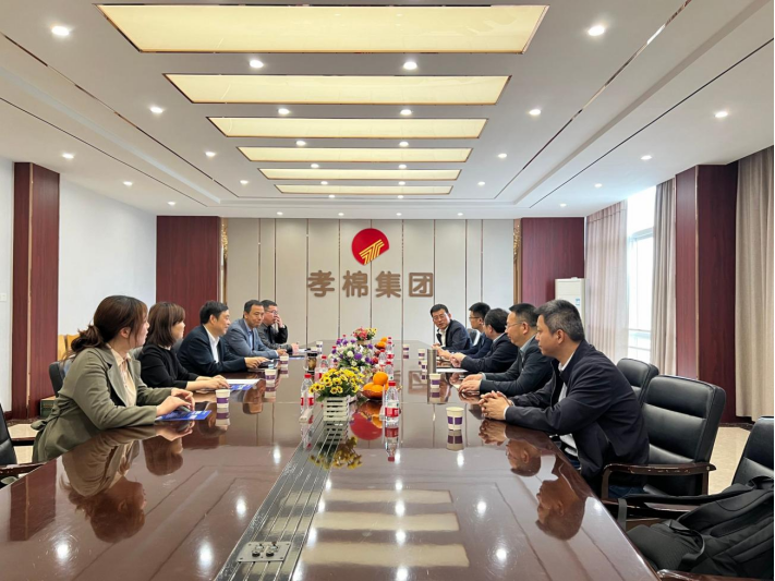 2024年4月,时任学校党委书记田辉玉一行参观走访孝棉集团
