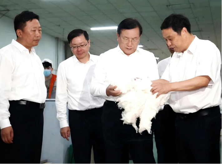 2023年8月,时任湖北省省长王忠林来到孝棉集团新疆金鑫昱纺织有限公司,盛赞其“以产业援疆深度融入新疆棉纺产业链”的战略布局,鼓励企业“争做新疆纺织行业排头兵”。