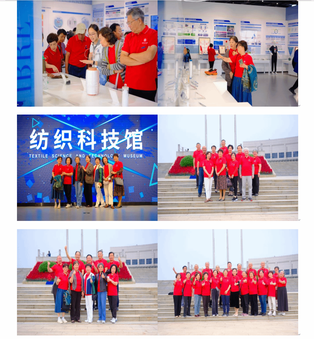 座谈会后,校友们在师生陪同下参观了纺织科技馆漫步校园,在教学楼、图书馆、运动场前合影留念,进一步感受母校的发展变迁。