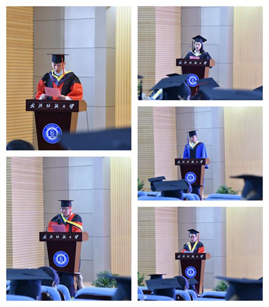 技术研究院的徐桂林、留汉工作的李梦辉四位2020届毕业生举行正冠、拨穗和授予学位仪式,希望他们不忘母校,常回母校看看。