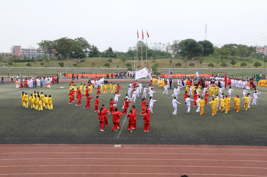 体育课部、学工部主办的学校第二届太极拳比赛在阳光校区田径运动场举行。校党委副书记刘在洲、副校长罗锦银以及各二级院部负责人出席了本次大赛。