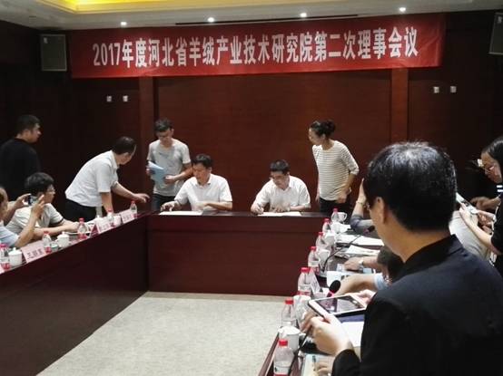 会议期间,张尚勇院长、沈小林副教授与来自全国的专家及企业进行了交流,观看了清河绒毛制品展示。在河北省羊绒产业技术研究院理事会第二次会议上,张尚勇院长被聘为学术委员会主任专家委员,他就目前影响清河羊绒行业发展的羊绒质量、设备老旧、污染集中处理、服装设计新颖等问题提出了建议。并代表纺织学院与河北省羊绒产业技术研究院签订了科研合作议向书。