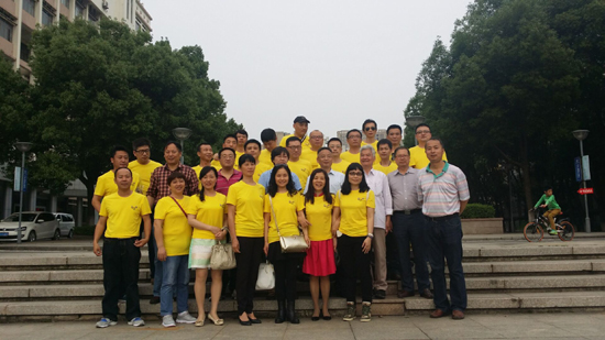 5月6日上午,针织87班校友在纺织学院陪同下,参观了学院教学大楼和重点实验室。并在纺大校园内和以前的老师留下了珍贵合影。