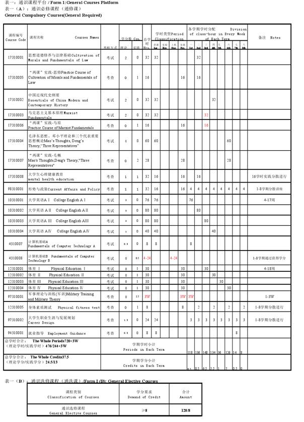 Students of this speciality can only be qualified to graduation after the completion of 160 credits (course learning and practical training) and 10 credits of quality expansion. (Innovative credits and speciality elective credits are interconvertible.).