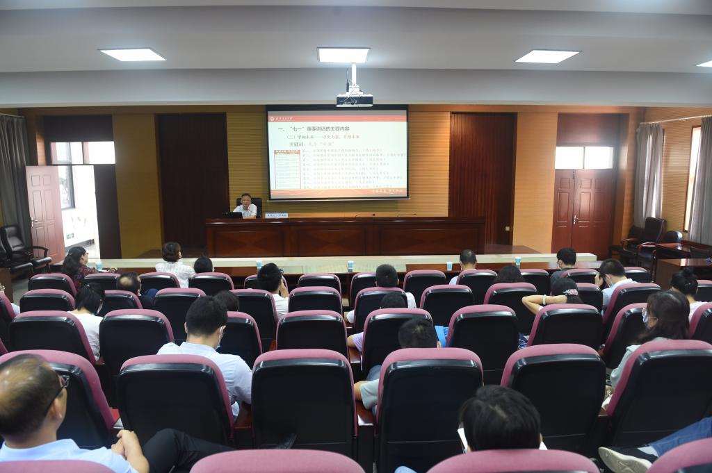 根据学校部署,9月30日下午在行政楼二楼学术报告厅,学校“七一”讲话精神宣讲团成员、党委副书记副校长罗锦银深入纺织学院宣讲习近平总书记“七一”重要讲话精神。学工部(处)、研工部、校友会、纺织学院全体教职员及学生党员代表参会学习。宣讲会由纺织学院党委书记张红鑫主持。