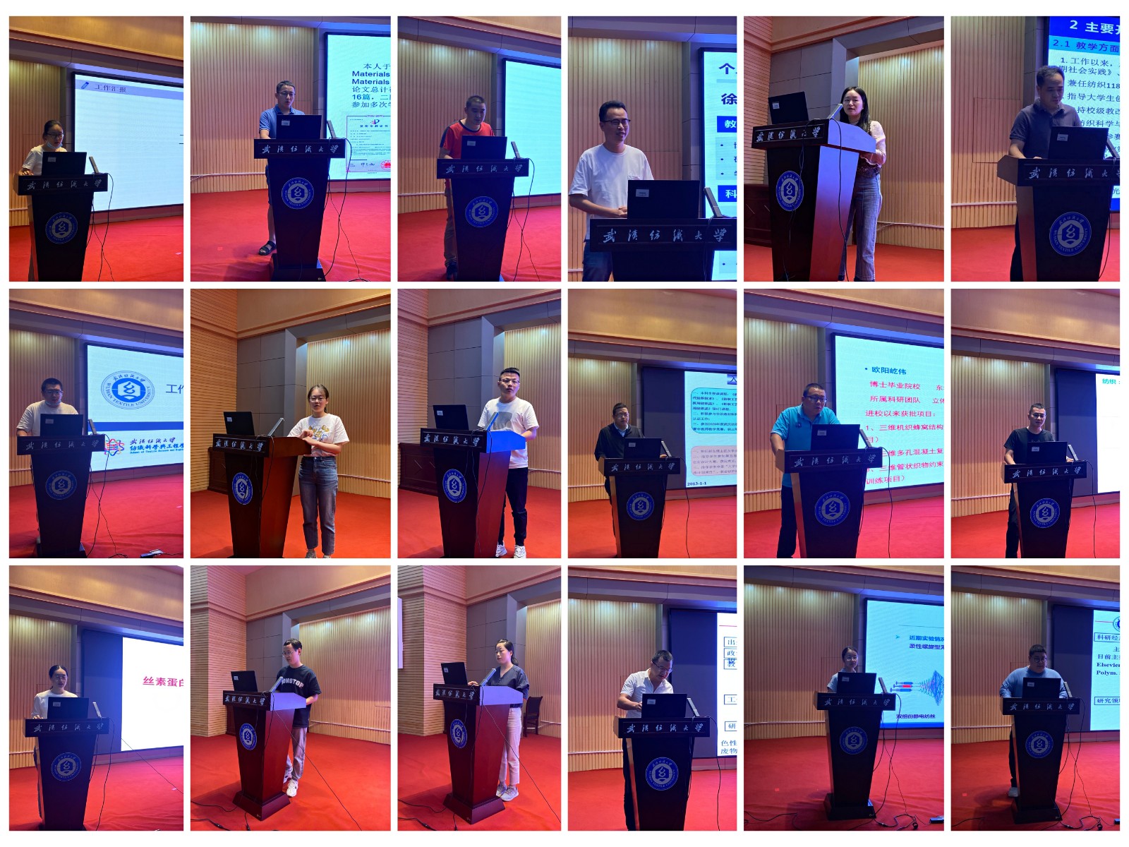 会上,徐杰、黄娟、罗磊、罗祖维、欧阳屹伟、唐晓宁、王洪龙、胡敏、杨波、江珊、涂虎、李岱祺、谭思睿、曾贝妮、赵仲、黄颖、张瑞、陶丹等18位学院青年教师代表依次从教育教学、科学研究、成果转化、工作展望以及存在困难等方面进行了汇报,青年教师主要聚焦在智能穿戴、面料设计与开发、生物医用、新型建筑结构、新能源等多维研究方向,诠释“大纺织”、“超纺织”的研究动态。
