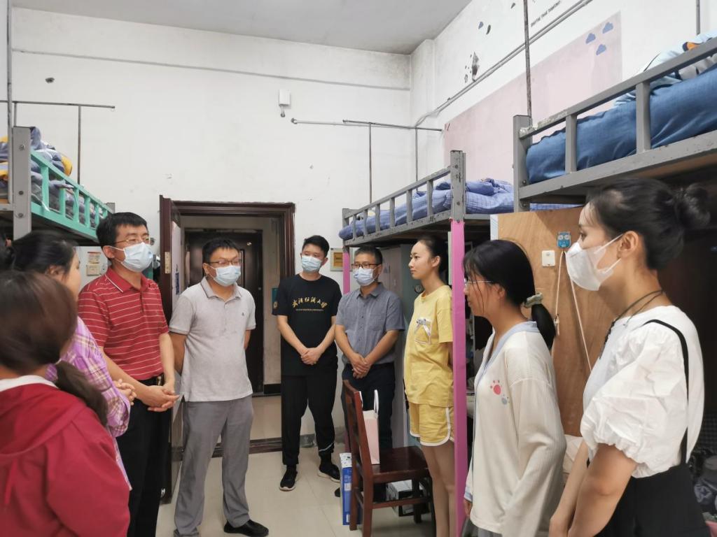 院党委书记余家友、院长蔡光明、副院长夏治刚、副院长柯薇、党委副书记李亮深入迎新现场看望参与迎新工作的师生,并在学生宿舍进行走访探望。“同学们,你们来自哪里?”“来到这里适不适应,饮食还习惯吗?”“生活上有没有什么困难?”院领导一行走访新生宿舍,了解同学们的家庭及生活情况,引导学生热爱纺织、深耕纺织、功成于纺织。全院教师齐上阵,开启停车路口接引、签到信息咨询、住宿登记指导、搬运行李物资等“一条龙”服务,便于新生更好地融入校园生活。