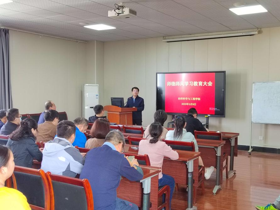 为进一步强化全院师德师风建设,提升教师队伍职业素养,3月9日纺织学院在8H502组织召开师德师风学习教育大会。全体教师参加会议,会议由学院党委书记朱张军主持。