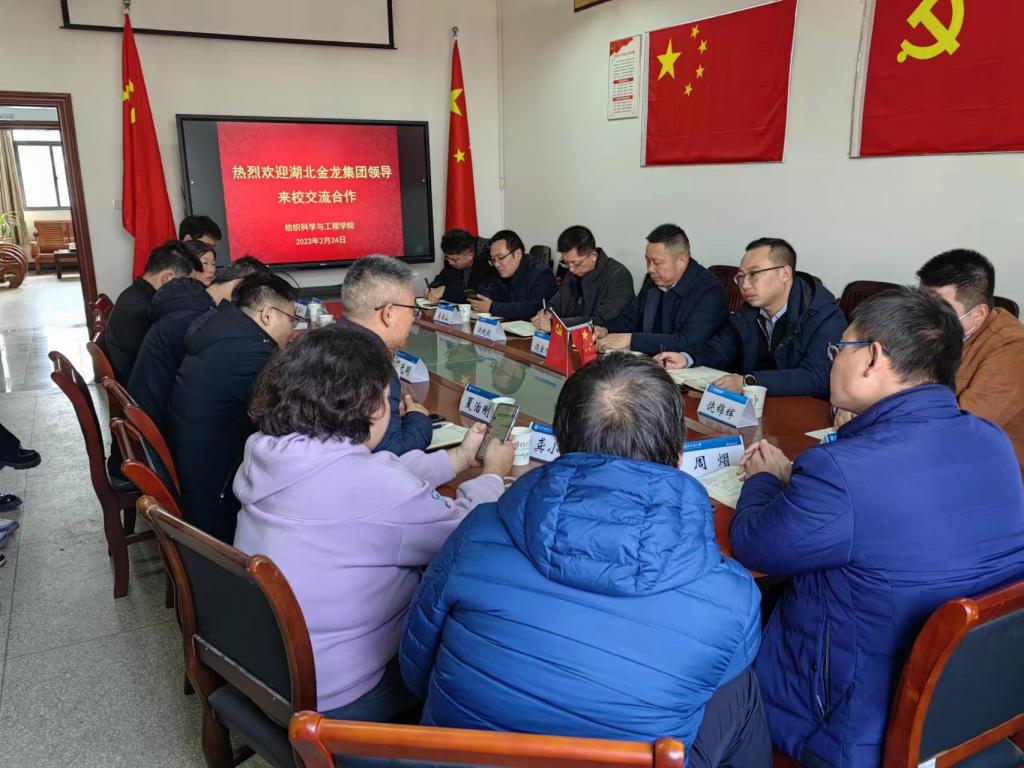 会议在纺织学院蔡光明院长的主持下进行,他首先代表学院对金龙集团董事长一行的到来表示热烈欢迎,并对学院发展历史、专业特色、人才培养、校企合作等情况做了介绍。他表示,湖北金龙集团是一个创新性强、产业化的集团,在行业内具有鲜明的特色优势和地位,希望未来在人才培养、新领域拓展等方面能够有更深度的合作。