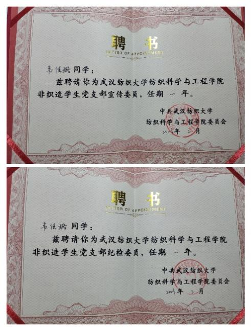 作为非织党支部的宣传委员和纪检委员,她及时了解掌握党员和群众的思想状况,宣传党的路线方针政策,提出宣传教育工作的计划和意见。组织党员学习党的基本理论、基本知识和时事政策,组织党课学习,做好思想政治工作。她担起青年使命,发扬志愿服务精神,从义务卖报到核酸志愿者,从蓝心义务家教到校内志愿巡逻,从儿童福利院到搬迁社区群众,累积483小时的志愿服务时长是她点滴付出的凝聚。她把爱心洒满了校园各处,把温暖传递在群众心中。她将青春挥洒于服务社会之中,用担当奉献书写青春华章!