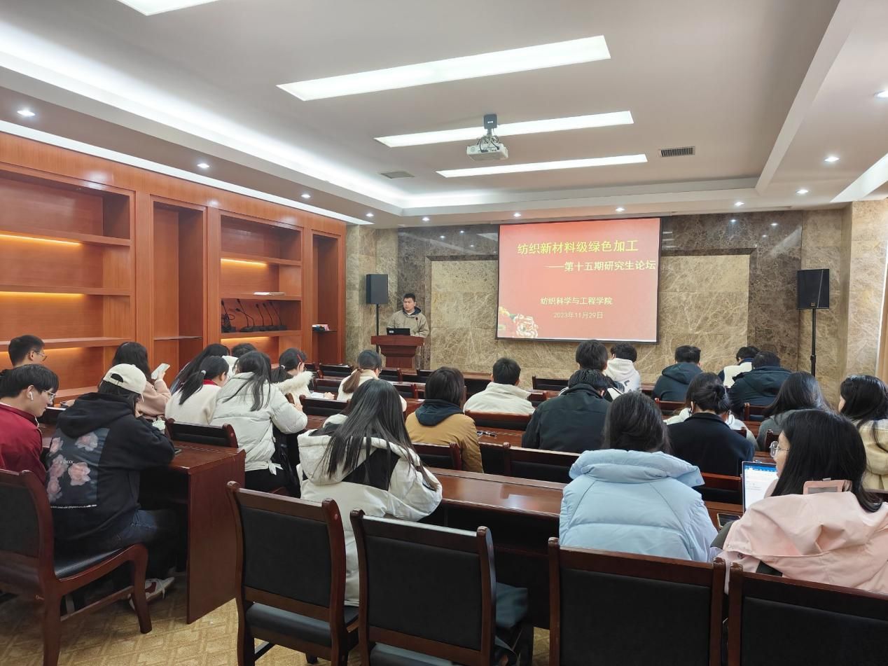 于11月29日下午14:30举办了第十五期“纺织新材料及绿色加工”研究生论坛。纺织学院青年老师和全体研究生参与了此次研究生论坛。