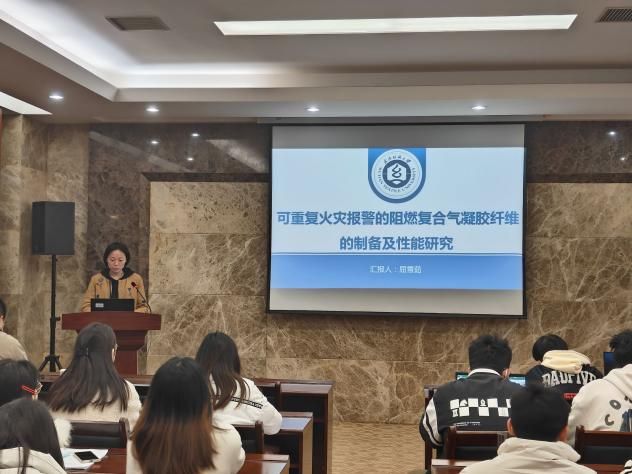 论坛上,辛利、翟梅青、马琦、屈雪茹四位同学依次介绍了自己的研究课题以及目前取得的研究进展,并分享了自己的科研项目和经验。主讲同学的研究课题包括芳纶短纤增强聚氨酯护舷材料力学性能研究、超轻耐高温纳米纤维气凝胶的制备与性能研究、纺织印花糊料及其复合体系应用性能研究、具有超阻燃和可重复火灾报警响应性能的复合气凝胶纤维用于消防服,契合了“纺织新材料及绿色加工”主题,代表了学院最新研究进展,参会人员积极提出问题和建议,营造了良好的学术氛围。