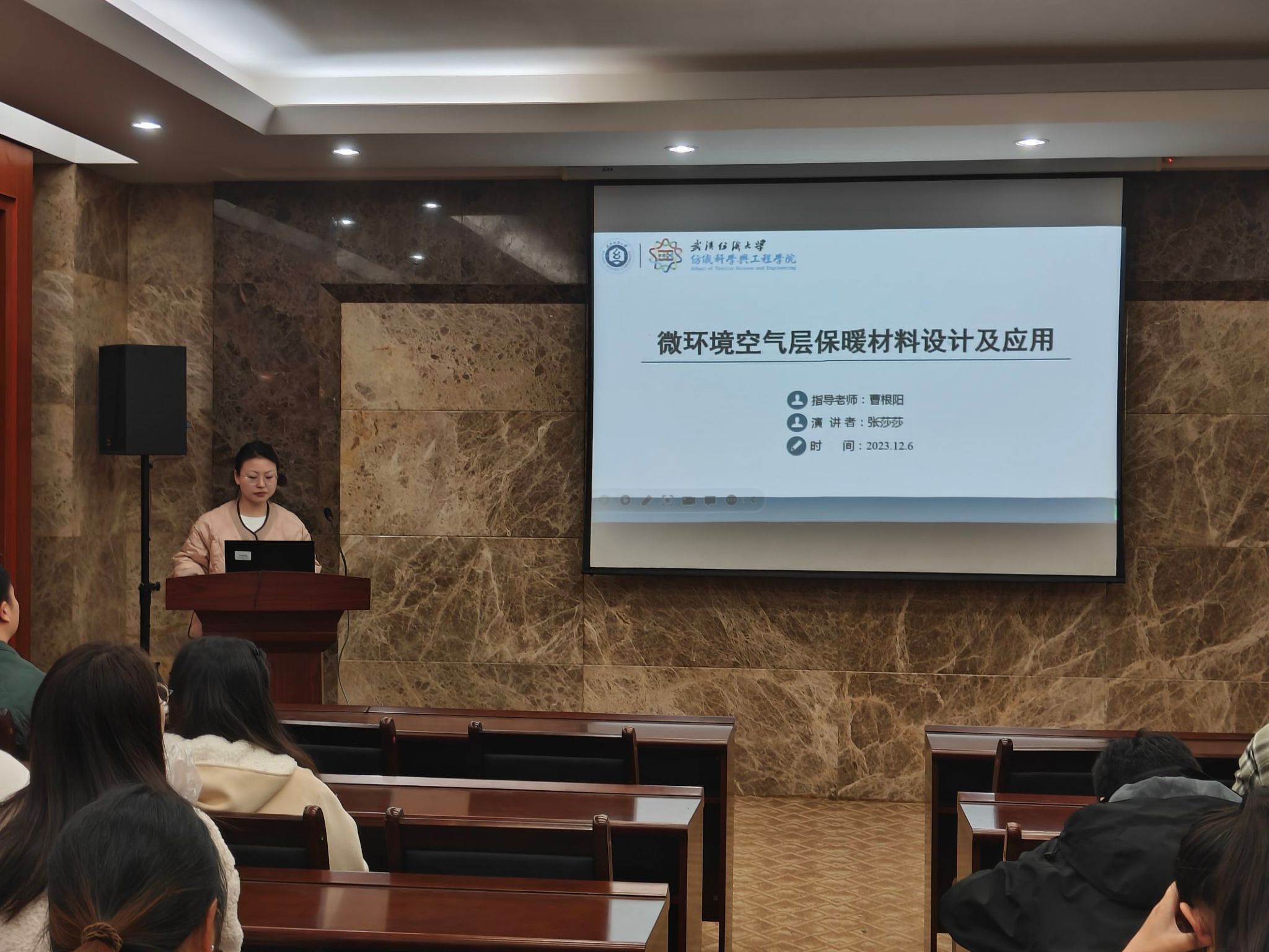 于12月6日下午14:30举办了第十五期“纺织新材料及绿色加工”研究生论坛。纺织学院青年老师和全体研究生参与了此次研究生论坛。