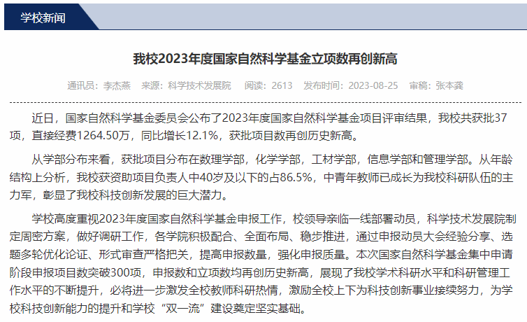 2.科研经费进账突破 3700万,国家项目数再创新高。科研总经费 3750 万元,完成攀登指标230%。获批国家级项目6项(国家科技部重点研发计划项目课题1项、国家自然科学基金面上项目1项、国家自然科学基金青年项目4项)、省级项目4项,科研经费额和项目数实现双提升。