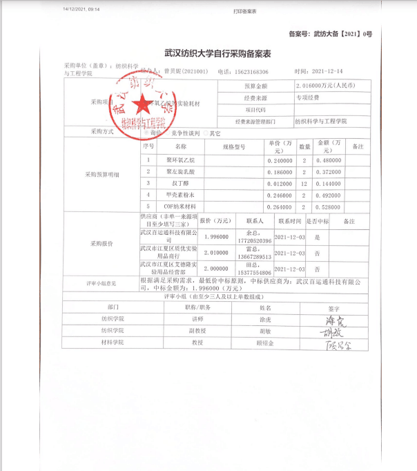 关于聚环氧乙烷等实验耗材的公示