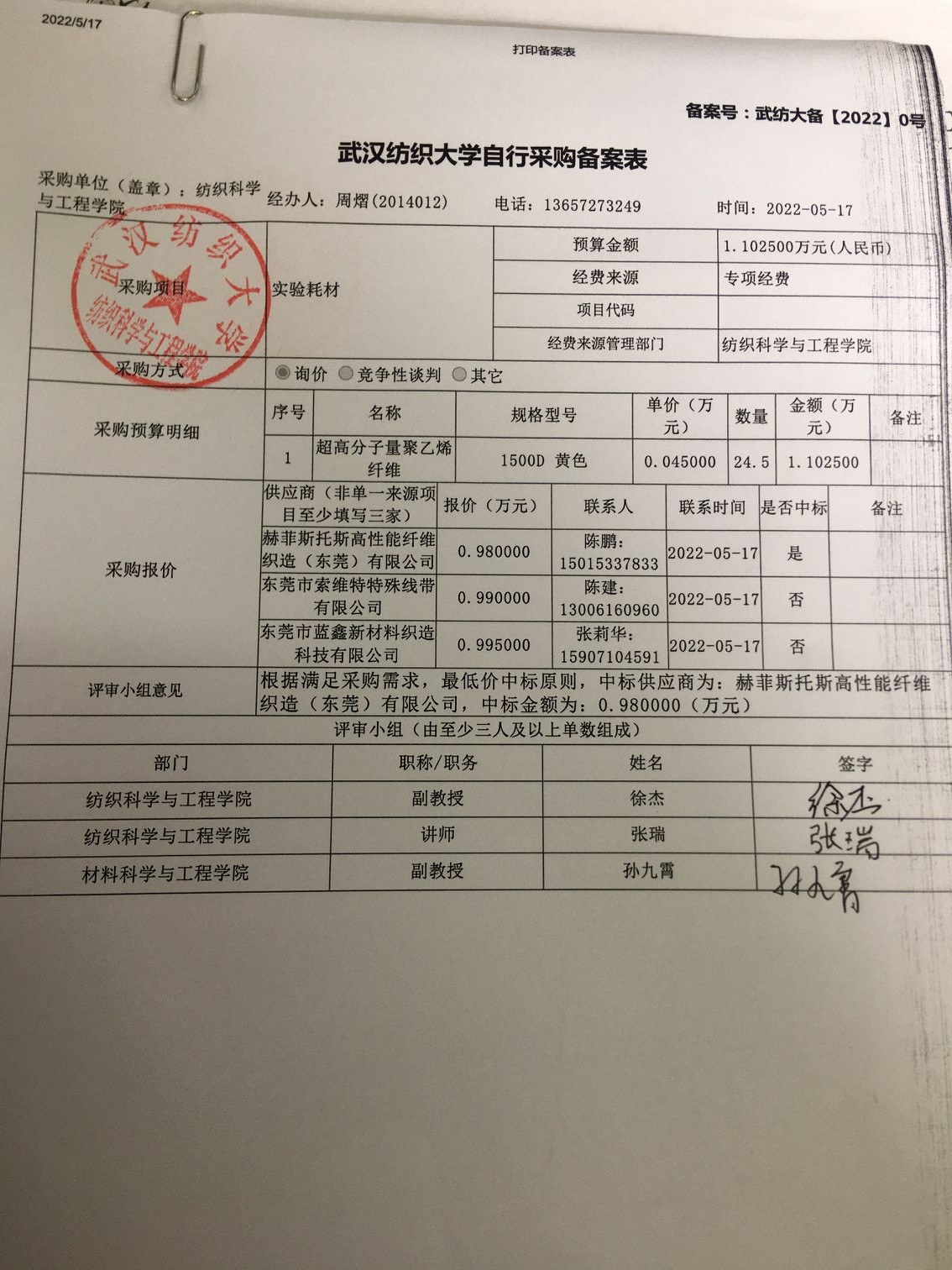 实验耗材备案表
