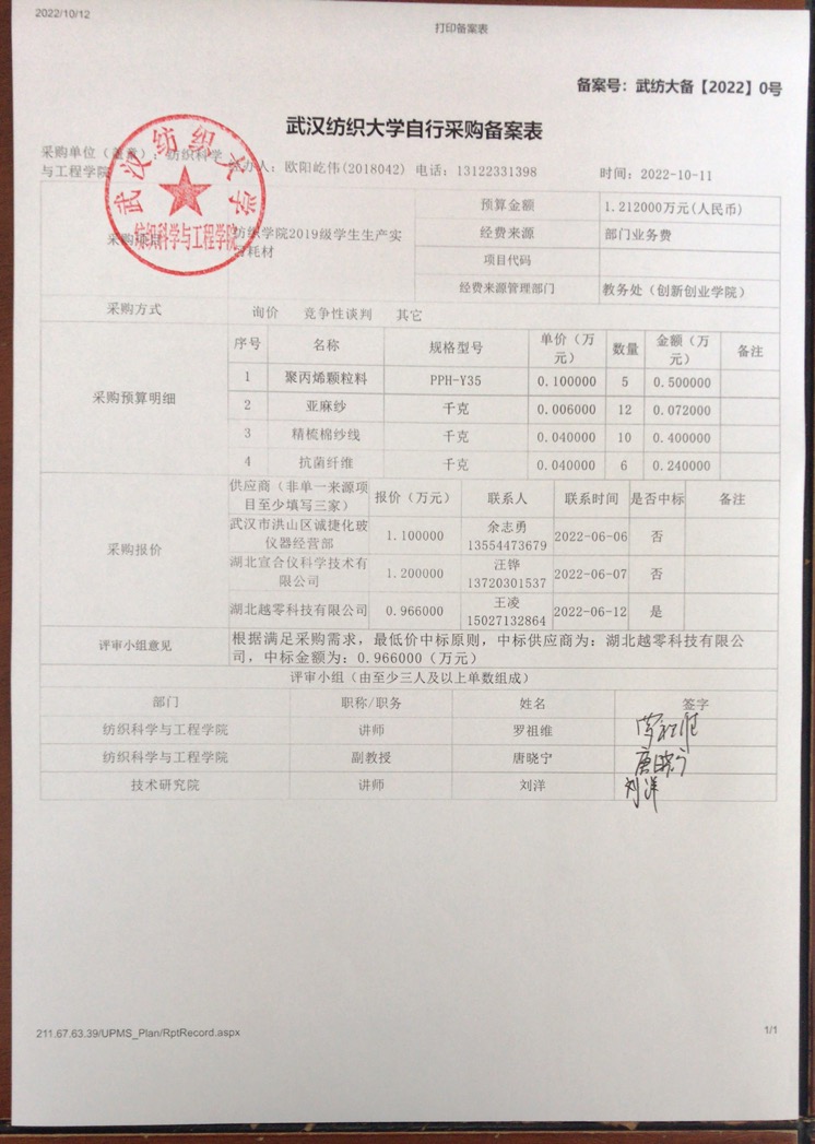 关于纺织学院2019级学生生产实习耗材的公示