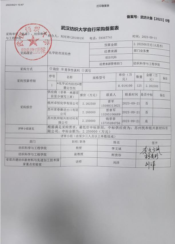 关于化学助剂采购公示
