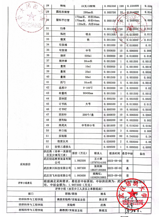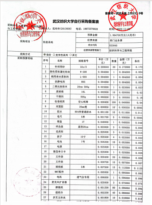 关于实验室耗材低值易耗(针织用纱、干燥剂等)采购询价的公示