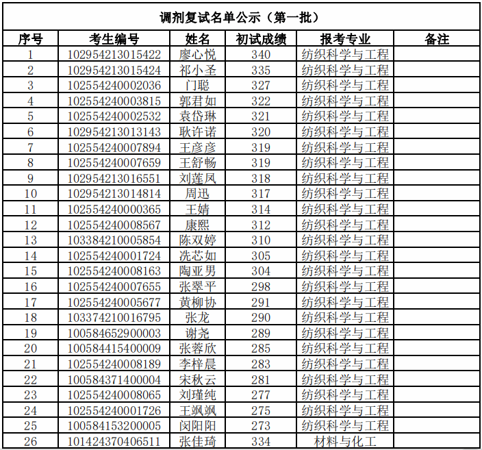 肉视频 硕士研究生调剂复试(第一批)名单见下,请各位考生收到复试通知后于规定时间内在调剂系统上进行确认,并根据本网站前期发布的调剂公告按时提交资格审查材料及缴纳复试费用。