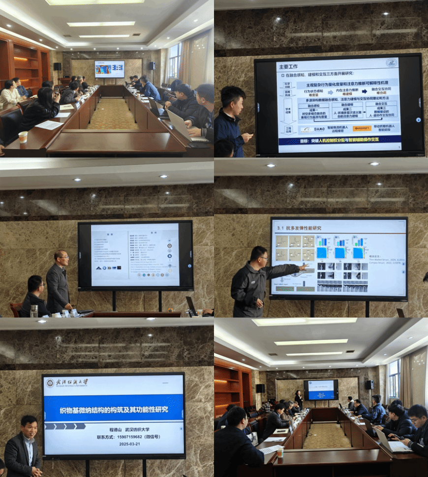 周阳教授、周熠副教授、程德山教授、丁放分别做主题报告,就智能纤维材料、功能纺织品等议题展开交流,凸显多学科交叉对产业链升级的推动作用。与会学者专家就报告内容进行了深度探讨,提出了指导性建议。