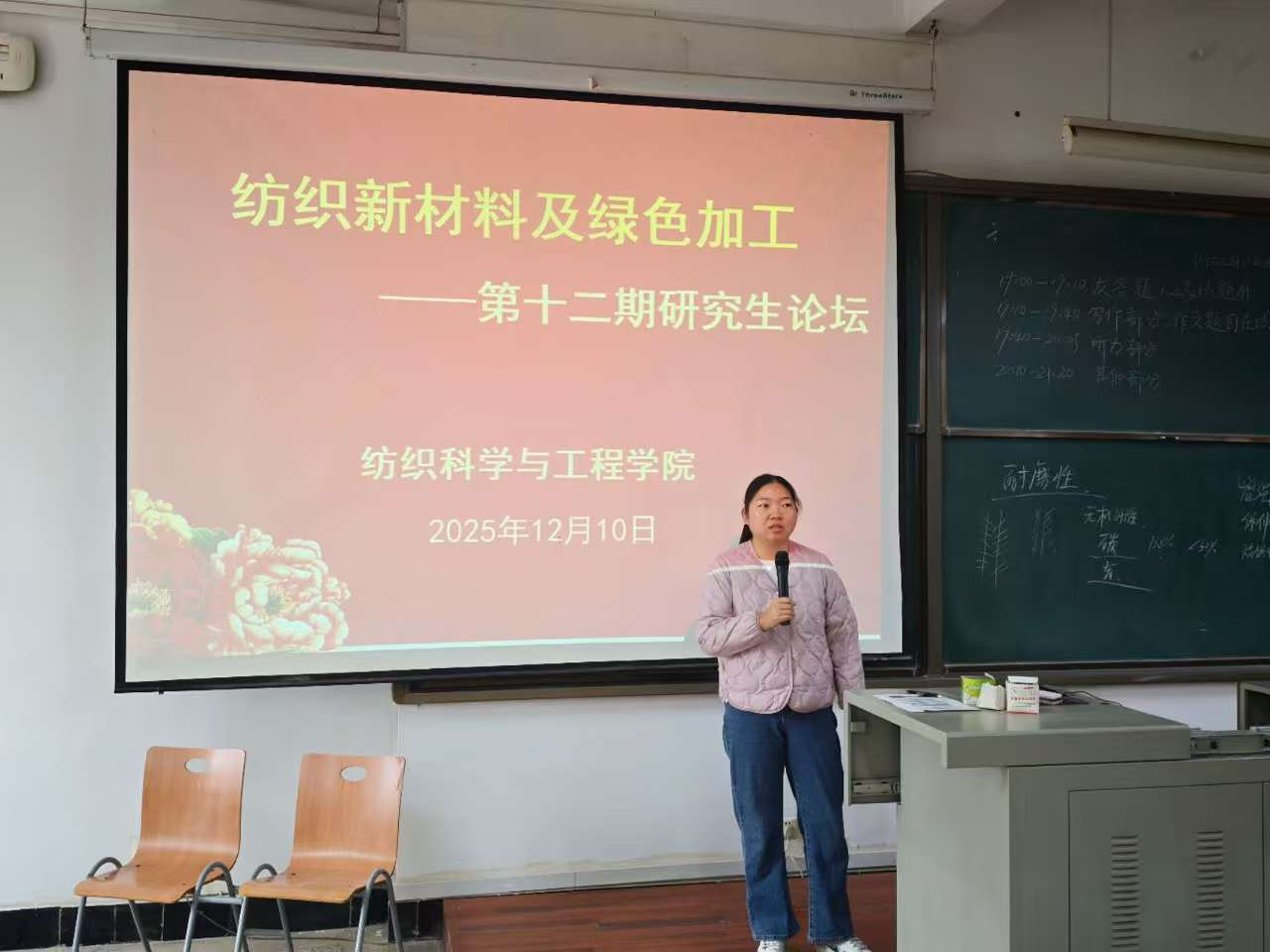 于12月10日下午14:30举办了第十二期“纺织新材料及绿色加工”研究生论坛。