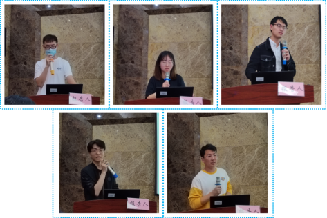 论坛上,方可、梁艺馨、丁嵩、胡灏东、姚文涛五位同学分别介绍了自己的研究课题和目前取得的研究进展,并分享了自己的科研经验。主讲同学的研究课题涵盖了接枝淀粉、针织传感器件、针织物建模与仿真等领域,契合了“纺织新材料及绿色加工”主题,代表了学院最新研究进展,营造了良好的学术氛围。