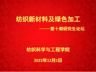 论坛上,岳程飞博士介绍了举办研究生论坛的主旨和意义,同时宣布第十期“纺织新材料及绿色加工”研究生论坛开始。