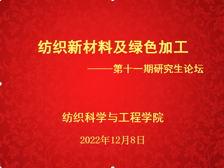 于12月8日使用腾讯会议(246187172)举办了第十一期“纺织新材料及绿色加工”研究生论坛。纺织学院青年老师和全体研究生参与了此次研究生论坛。