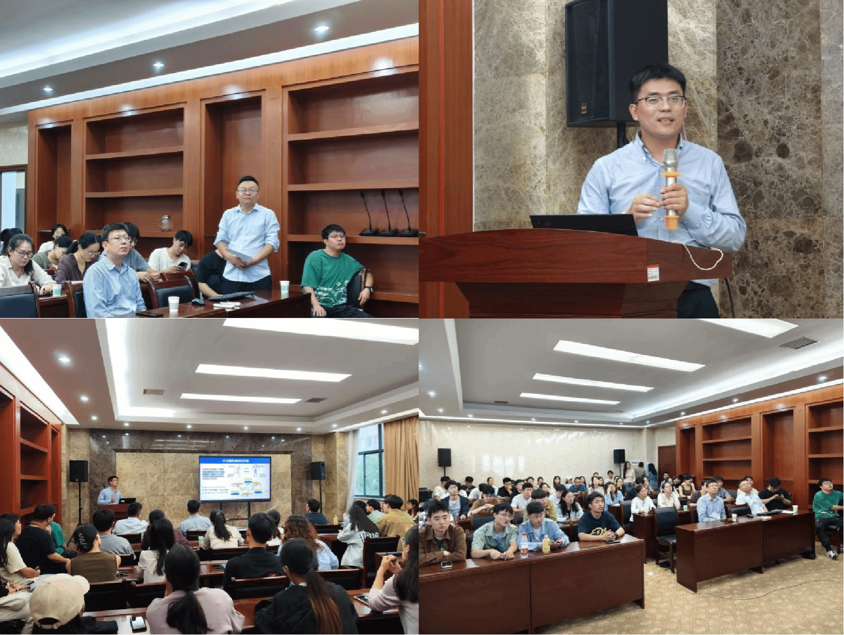 蔡光明教授首先介绍了董凯研究员的科研、工作经历,并对董凯研究员的出席表示了热烈欢迎。讲座中,董凯研究员以“机电转化纤维材料与可穿戴自供能纺织品”为题介绍了该课题的研究背景,并分享了如何解决基于摩擦电效应机电转化纤维材料的起电机制不清、电输出性能不高、自驱动传感品质不高和智能化应用场景有限等诸多关键科学技术问题。董凯研究员提出经探究摩擦/接触起电机制,通过表界面材料改性、界面微结构调控、三维织物结构设计,提升了机电转化纤维材料的输出功率密度和压力传感品质。通过电路管理、程序开发和界面设计,研究了机电转化纤维材料在多种场合下的应用,并积极推进摩擦电效应机电转化纤维材料的产业化应用。董凯研究员和参会的师生就机电转化纤维材料与可穿戴自供能纺织品进行了热烈的交流,为师生们答疑解惑,参会教生表示讲座内容干货满满、收获满满。最后,参会师生对董凯研究员表示了诚挚感谢。