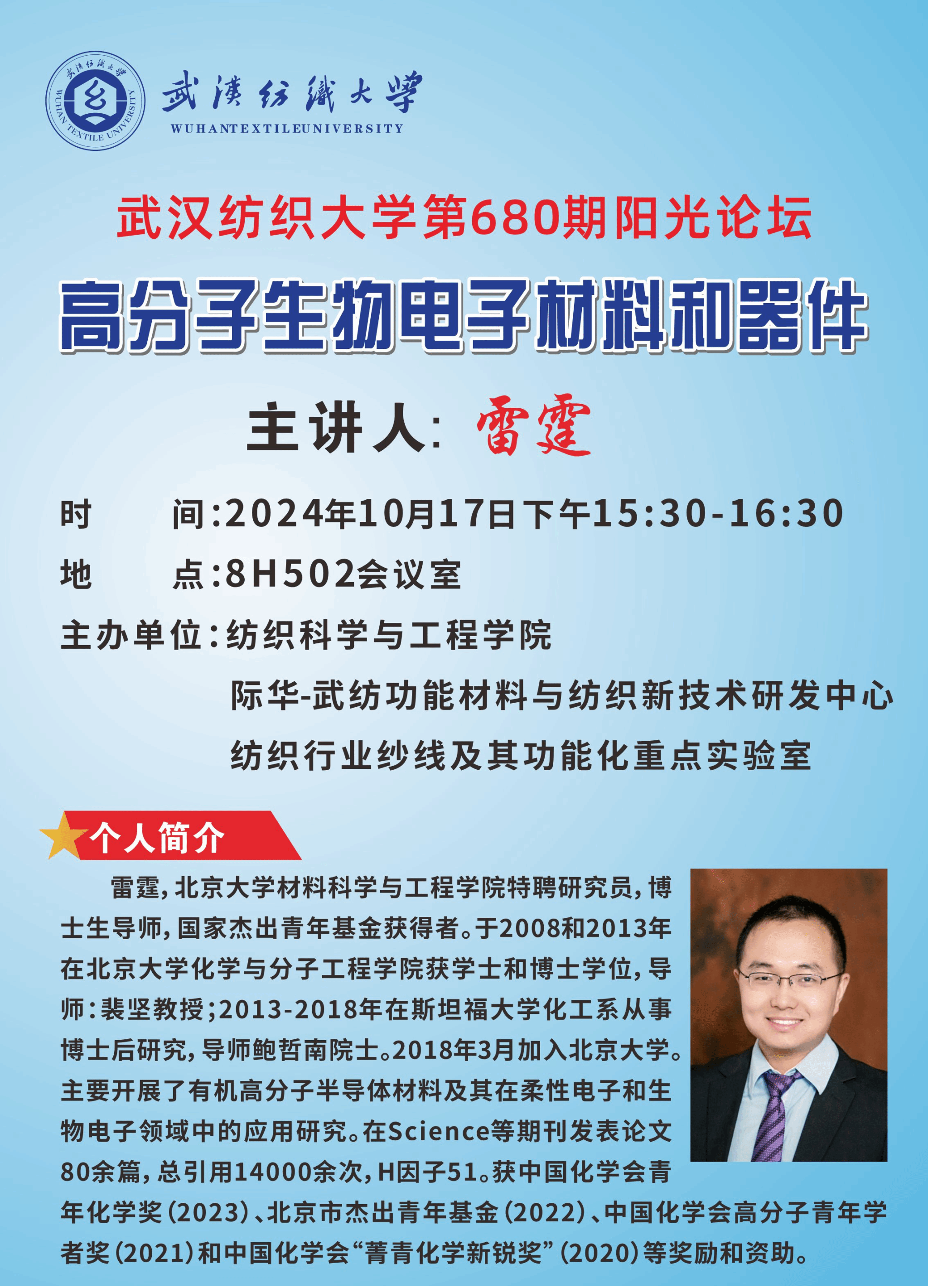 北京大学材料科学与工程学院特聘研究员、国家杰出青年基金获得者雷霆应邀于2024年10月17日下午做客肉视频