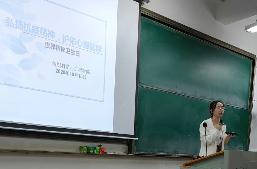 为提高2020级纺织学院新生的安全意识与自我心理健康意识,并积极响应世界精神卫生日的号召,纺织学院于2020年10月11日晚上19点在3栋教学楼03-318教室开展了以“弘扬抗疫精神,护佑心理健康”为主题的知识讲座,讲座由20级辅导员老师吴童玲主持。