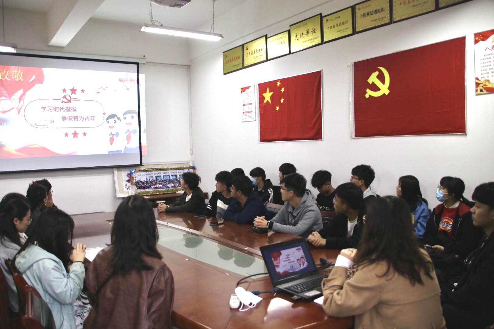 为培养大学生的崇高追求,爱国报国的高尚境界。11月18号,纺织学院与崇真楼8H504开展“学习时代楷模,争做有为青年”思想教育讲座。纺织学院党委副书记陈海,辅导员吴童玲,院学生干部参加了本次思想教育讲座,讲座由陈海主持。