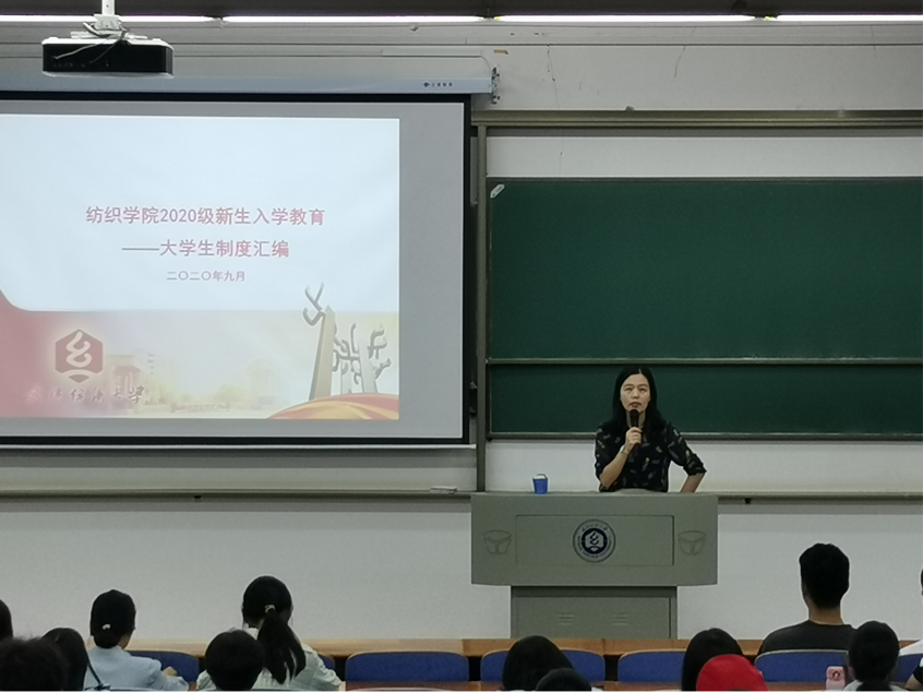 为了20级新生更好的了解学校相关资助政策,学生管理规定,纺织学院于9月30日晚上18点,于3栋教学楼03-T202教室开展新生入学教育——政策宣讲会。会议由学院副教授严蔷薇主讲,20级新生全体参与。