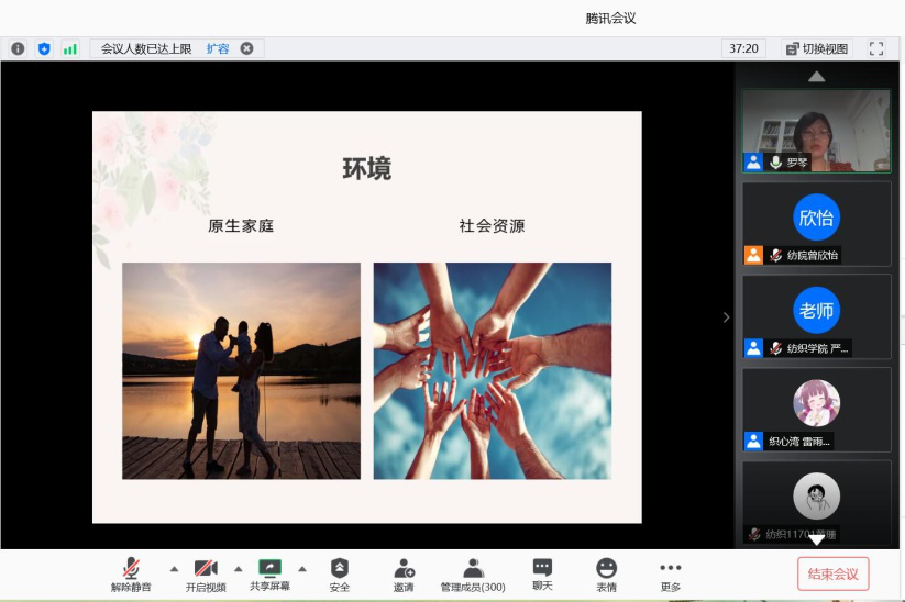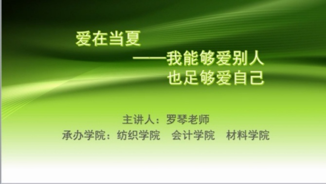 2020年7月3日晚8点,由校学工部、心理健康中心主办,纺织学院、会计学院和材料学院承办的云端师生心理健康讲座在腾讯会议成功举行。本次讲座面向全校师生开放,由心理咨询师、注册心理治疗师罗琴老师主讲,主题是“爱在当夏——我能够爱别人 也足够爱自己”,纺织学院严蔷薇老师主持了本次会议。