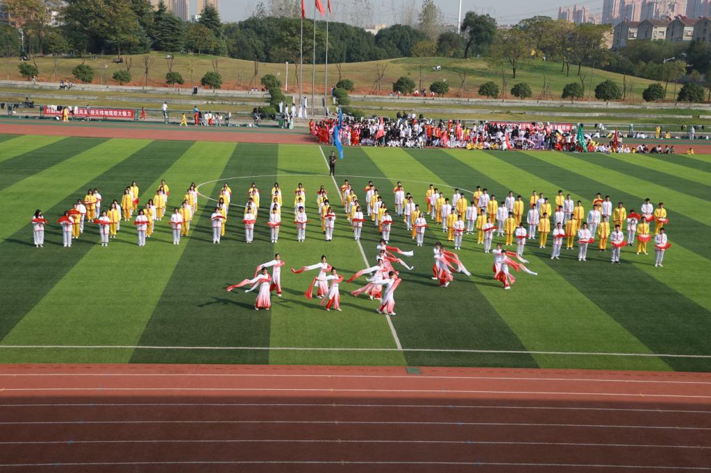 太极音乐结束,队伍再次列队,跟随纺院旗帜整齐退出场地,到这里,纺院的太极拳比赛正式落下帷幕!