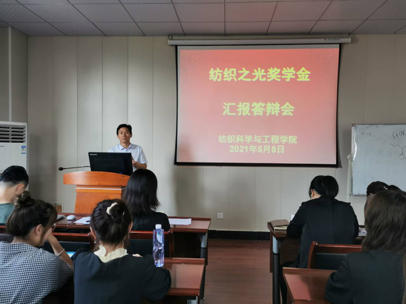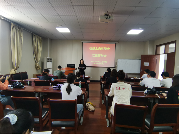 为评选出纺织之光奖学金,发掘纺织学院优秀榜样人物。纺织学院于5月8日14:00在8h502举行纺织之光奖学金汇报答辩会。答辩会由辅导员严蔷薇主持,纺织学院党委副书记陈海,系主任柯薇、张明,全体辅导员和各位入围优秀学子出席会议。