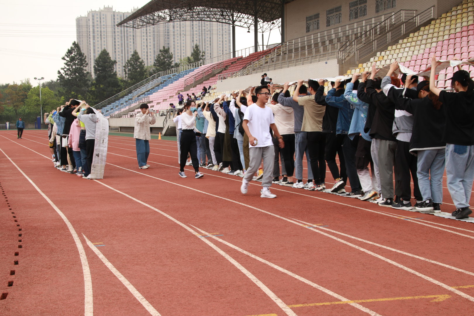 为促进纺织学院学生班级建设,提升班级内部与班级之间的凝聚力,培养同学们的阳光心态,4月15日下午1点,纺织学院在阳光校区操场开展了一次别开生面的心理素质拓展活动,以游戏的方式促进同学们的成长。