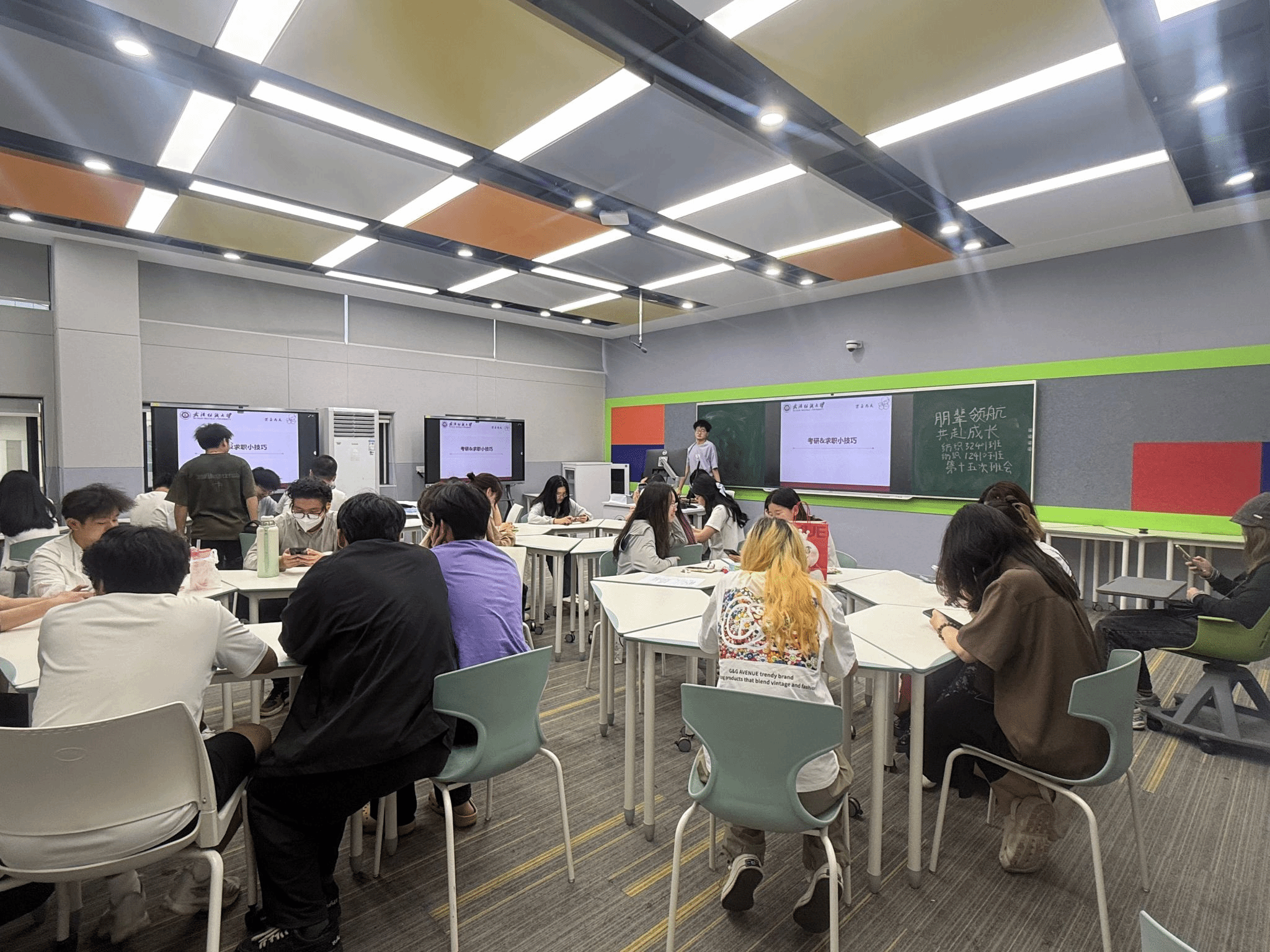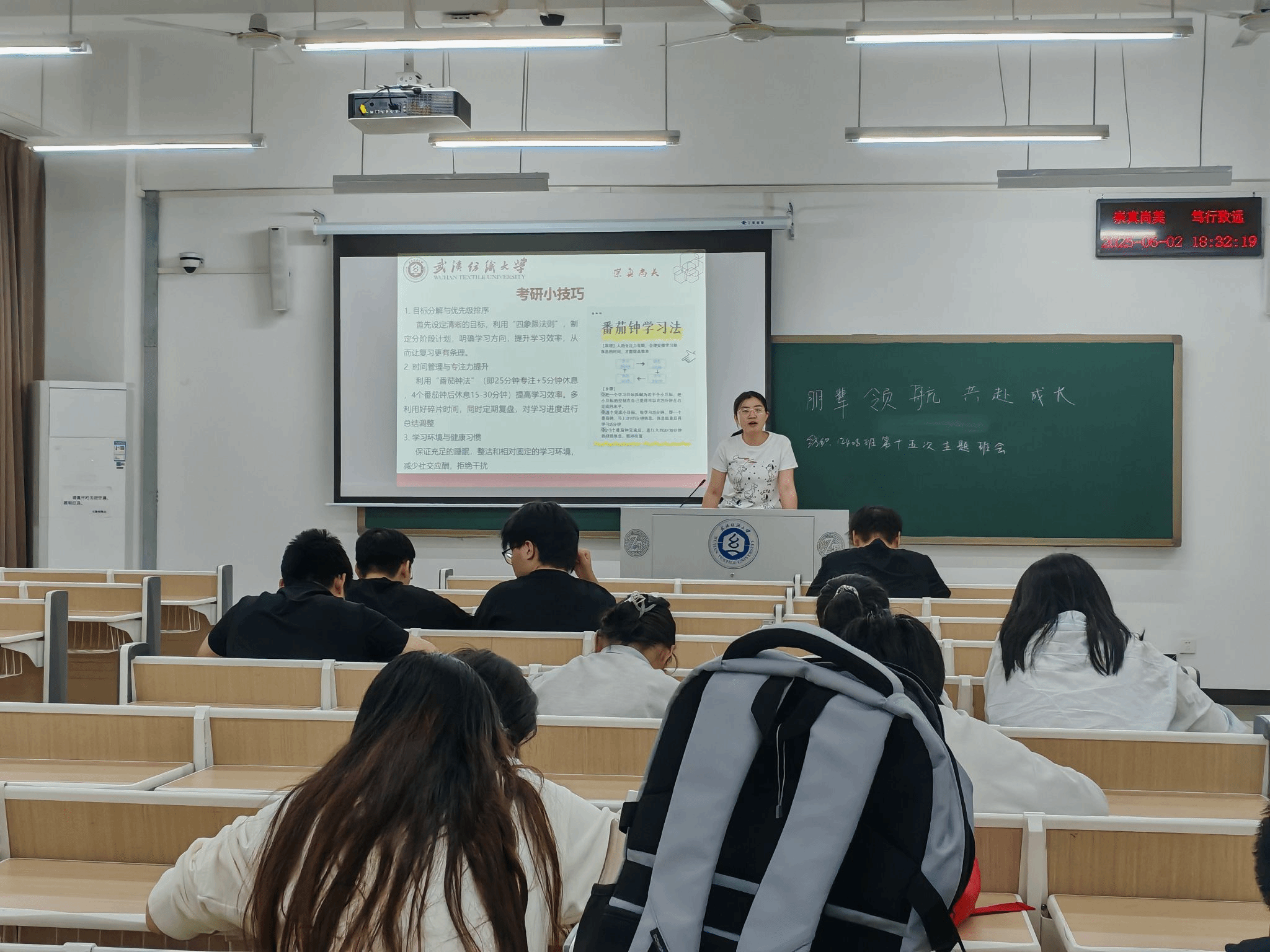 会上,国励获得者轻化12102班张英姿为大三学生分享了自身大学期间参与社会实践、学术科研的经历,并结合自身备考经历,从院校选择、复习规划、心态调整、复试技巧等方面展开讲解。她鼓励大家要珍惜在校生活的学习时光,趁早明确目标、做好规划,努力拼搏,成为自己想成为的人。